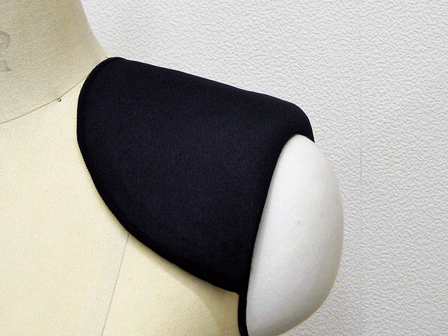 ※もしシワになっていた場合、左写真のように肩パットの端を持ち上げてパットの内側から蒸気アイロンをあててください。
