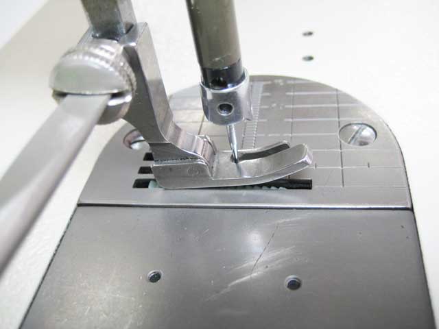 ミシンの押えは、送り歯が出ていない状態で取り付けるのがベストです。
