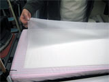アイロン台の上で表地と接着芯地をキチッと合わせます。